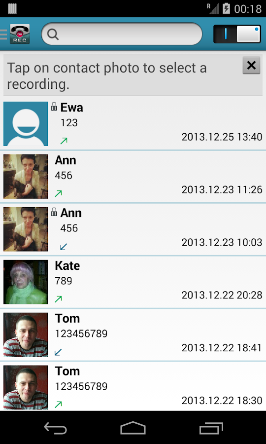 Rekaman yang tersedia dalam folder CallRecorder dalam kartu SD ponsel Anda.